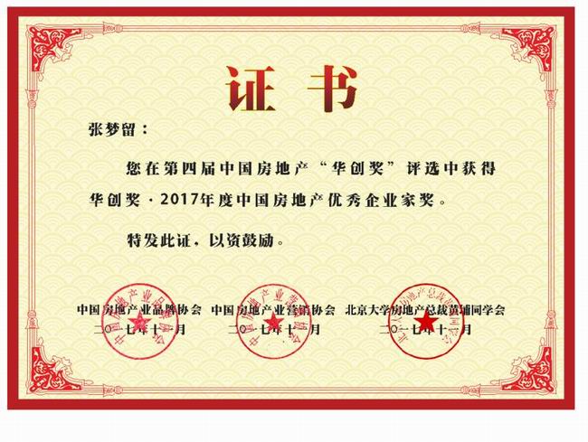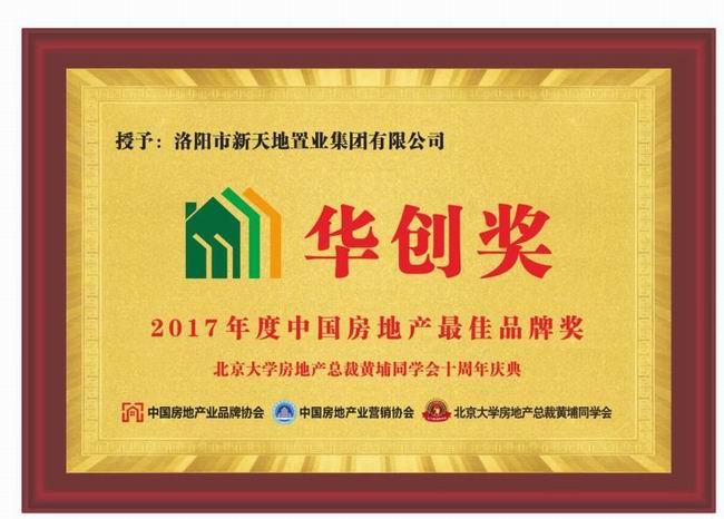 作為洛陽地產行業的領軍人物,新天地集團不負眾望,憑借雄厚的品牌實力和***產品的成功塑造,以及董事長張夢留的個人魅力,斬獲“華創獎?2017年度中國房地產***佳品牌獎”和“華創獎?2017年度中國房地產***企業家獎”雙桂冠。